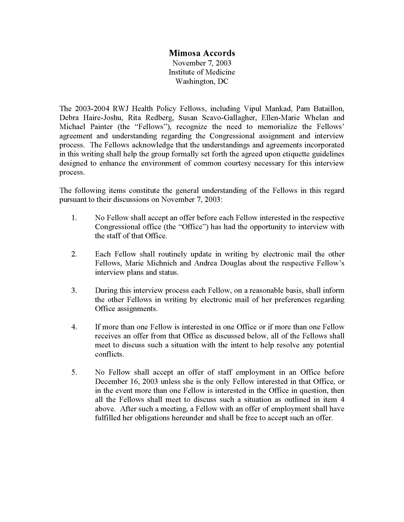 “One thing that we did that was kind of fun was what we called the “Starbucks Accord.” We all met at a Starbucks one time, and we agreed that nobody would accept a placement in our five person group unless everybody agreed it was the right spot for that person. So we all met, and when a placement was pending, we would all agree….There was no dissent. I don’t know what we would have done if there had been dissent.