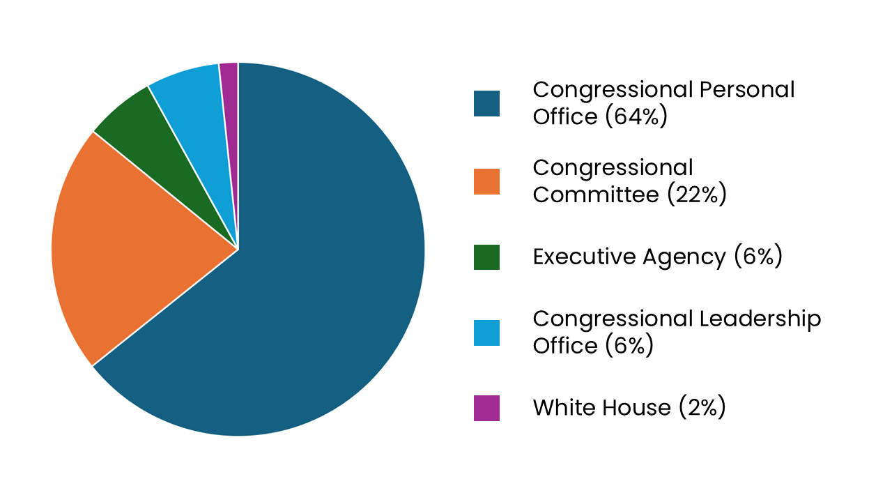 In the early days of the fellowship, fellows were encouraged to serve in two different offices — one in the Senate and one in the House — following the model of the American Political Science Association (ASPA) Congressional Fellowship. It was also common for fellows to serve in one Republican and one Democratic office. Over time, the number of fellows holding two placements has declined. However, some fellows still choose to extend their fellowship and pursue two placements to expand their exposure to issues, types of work, and different office cultures.